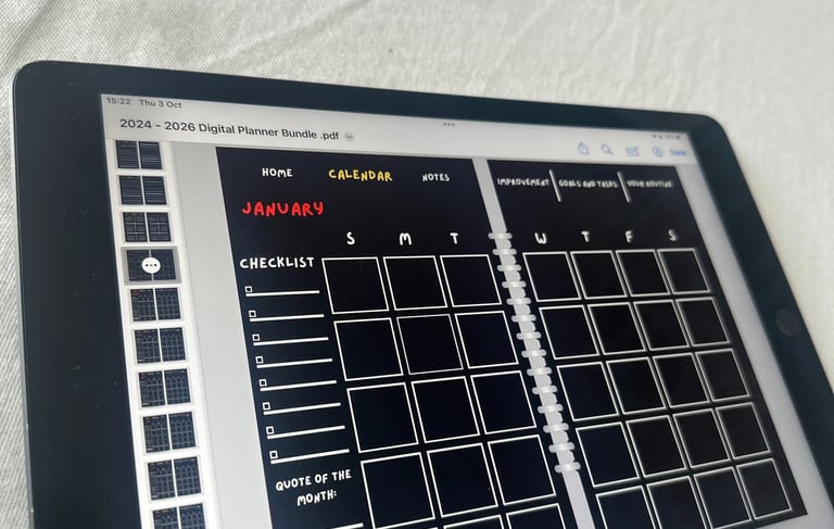 I designed a complete digital productivity planner, building structured pages for daily routines, habits, goals, and reflection. Although the product didn’t gain traction, it taught me valuable lessons about digital product launches, especially the importance of engaging short-form marketing content and consistent branding. The project demonstrates my ability to conceptualise, design, and package a functional digital product while learning from real market feedback.