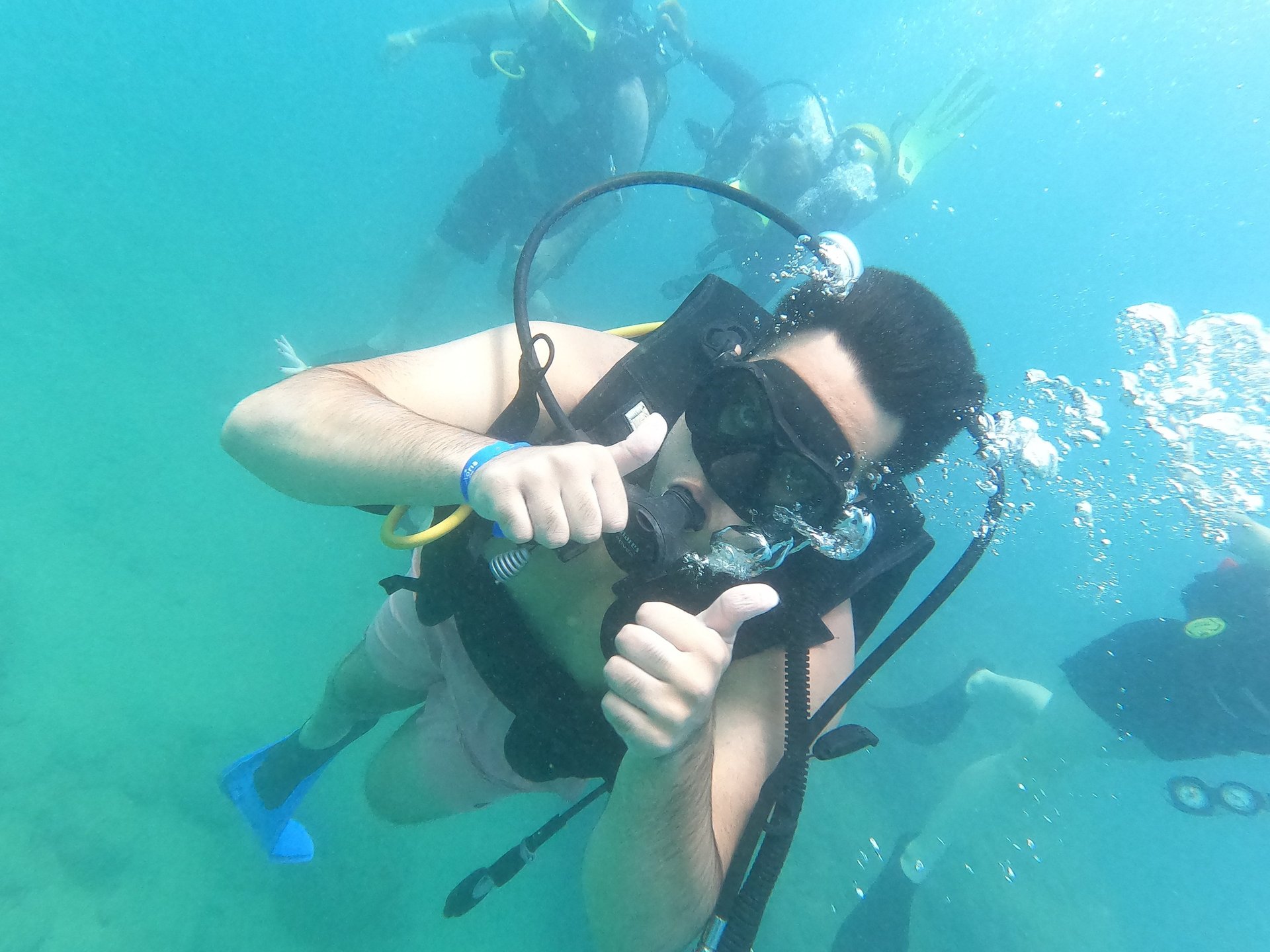Starting scuba diving is a new and somewhat frightening decision for me. Despite being on a family holiday, I am preparing for a solo adventure in scuba diving. I am feeling a mix of tension, excitement, and joy as I get ready and feel the weight of the scuba gear being put on me. I want to explore the crystal clear sea and gain a new perspective through this activity. Upon immersing myself in the salt water, I encountered a captivating underwater world teeming with a beautiful ocean ecosystem.